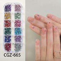 อุปกรณ์ตกแต่งเล็บเพชรเม็ดกลมขนาดเล็ก12กล่องพร้อมขนาดผสมและประกายระยิบระยับสุดๆ